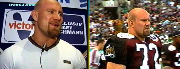 Als ihm mal mal die Instruktion entgingen sackte er mal einfach den Schottischen QB Star Marcus Crandell.