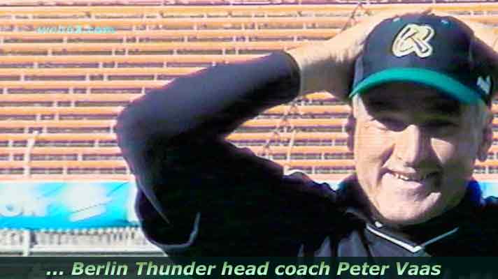 Head coach Peter Vaas gewann seinen 2. Titel mit Berlin Thunder und erneut aus der Underdog Position. Dieses Mal gegen Rhein Fire in deren Stadion und mit dem extrem guten Quarterback Todd Husak, der ein feines Interview gab.
